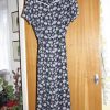Navy / white flowers dress, short sleeves